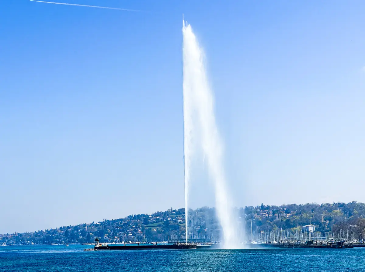 The iconic Jet d’Eau fountain shoots water 140 meters into the air, making it visible from nearly anywhere around the lake. This Geneva landmark defines the city’s skyline and creates a unique atmosphere you won’t find anywhere else in Switzerland.
