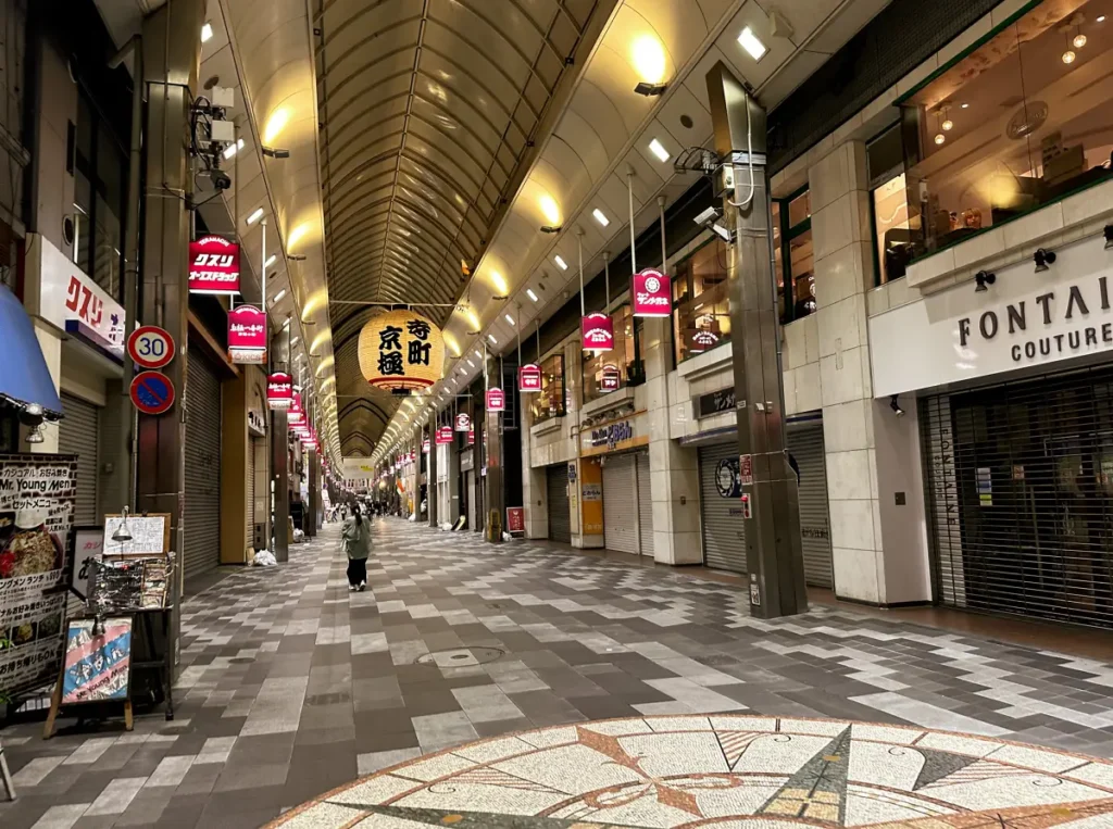 The walk to the hotel is straightforward. You follow Teramachi Shopping Arcade, which makes it easy to find. The arcade has several restaurants and shops, and there are convenience stores near the hotel. The location worked well for exploring central Kyoto.